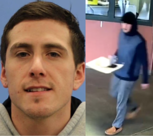 He was spotted departing in a blue and white hoodie with the hood tucked down over his eyes, grey trousers, and slippers, as captured on surveillance tape.