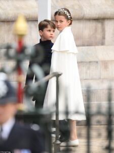 Princess Charlotte and Prince Louis were previously seen looking out of a car window as they arrived at the chapel.
